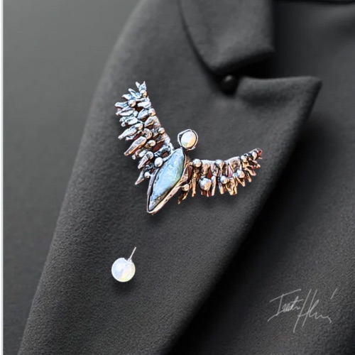 Originální autorská brož vytvořená technikou měkkého pájení cínu se stříbrem.